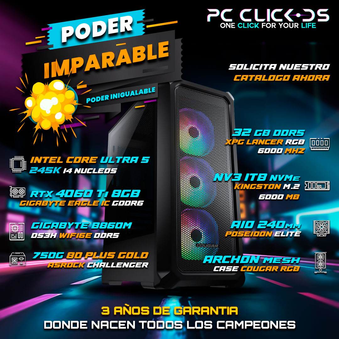 Disfruta del PODER IMPARABLE de nuestras Nuevas PC GAMERS equipadas con los mejores componentes premium que PC CLICK DS te trae